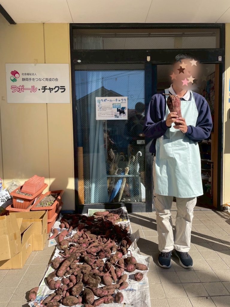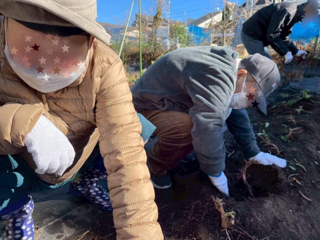晴天の中☀️、 利用者さんのご両親のご好意で、さつまいも掘り🍠を行いました🤗🎵 さつまいもを傷つけないように慎重に慎重に土をかき分けながら、皆さん一生懸命に掘り起こしていました☺️🙌! 良いひと汗をかきながら、沢山収穫する事が出来ました😋🍠✨!!