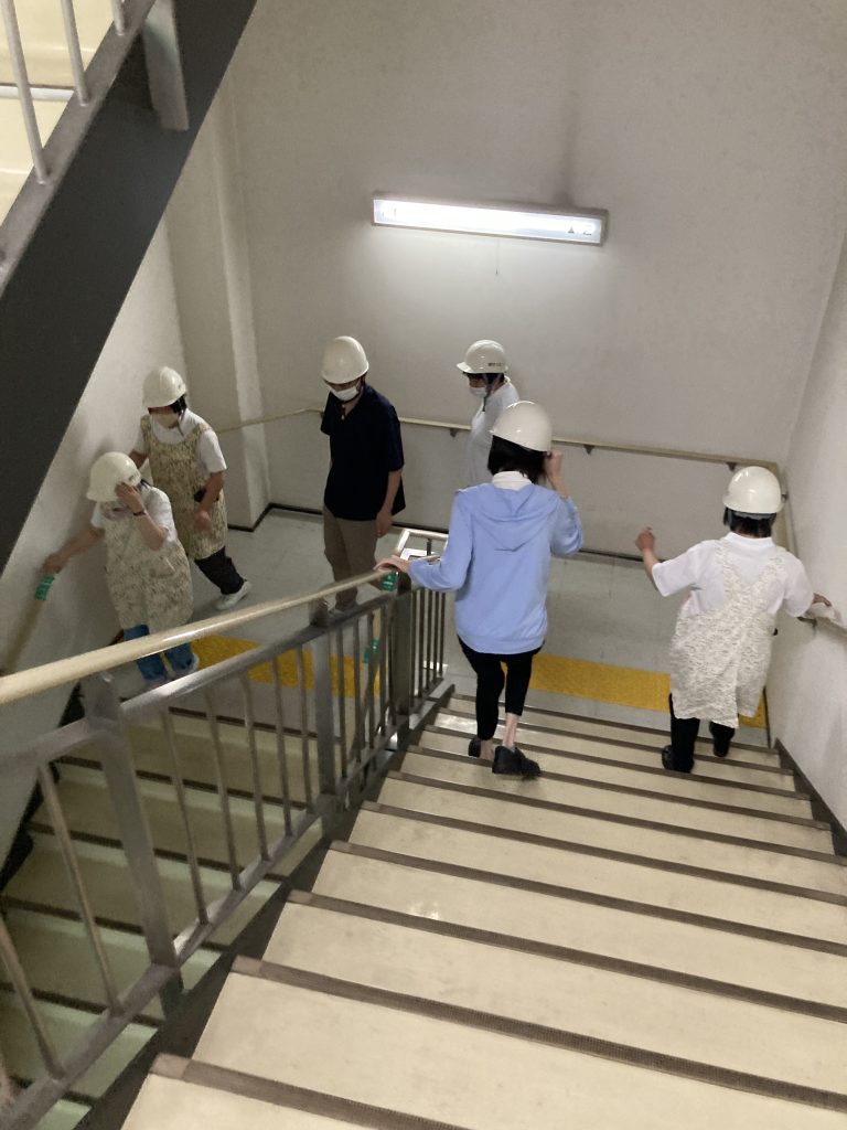 いつもは使用しない階段から1階に避難です